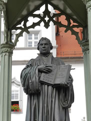 «El 10 de Noviembre de 1483, a las once de la noche, en Eisleben dio a luz Margarita Ziegler, esposa de Juan Lutero, minero de Moehra, un niño que fue bautizado al día siguiente en la iglesia de San Pedro del mismo pueblo, y recibió el nombre de Martín.